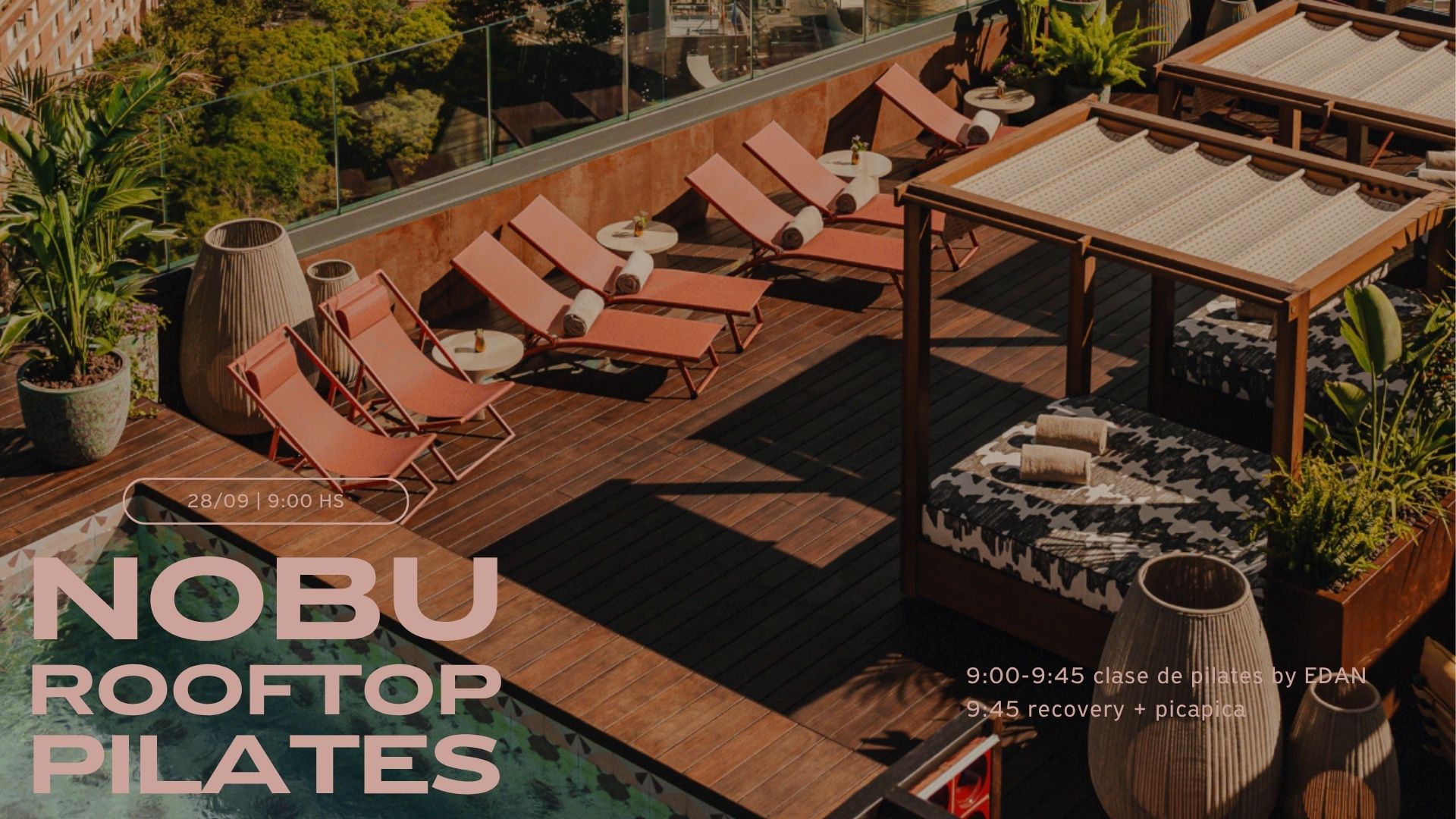 Un entreno de pilates mat con vistas espectaculares del rooftop del hotel Nobu. Incluye recovery - refrescos y desayuno buffet